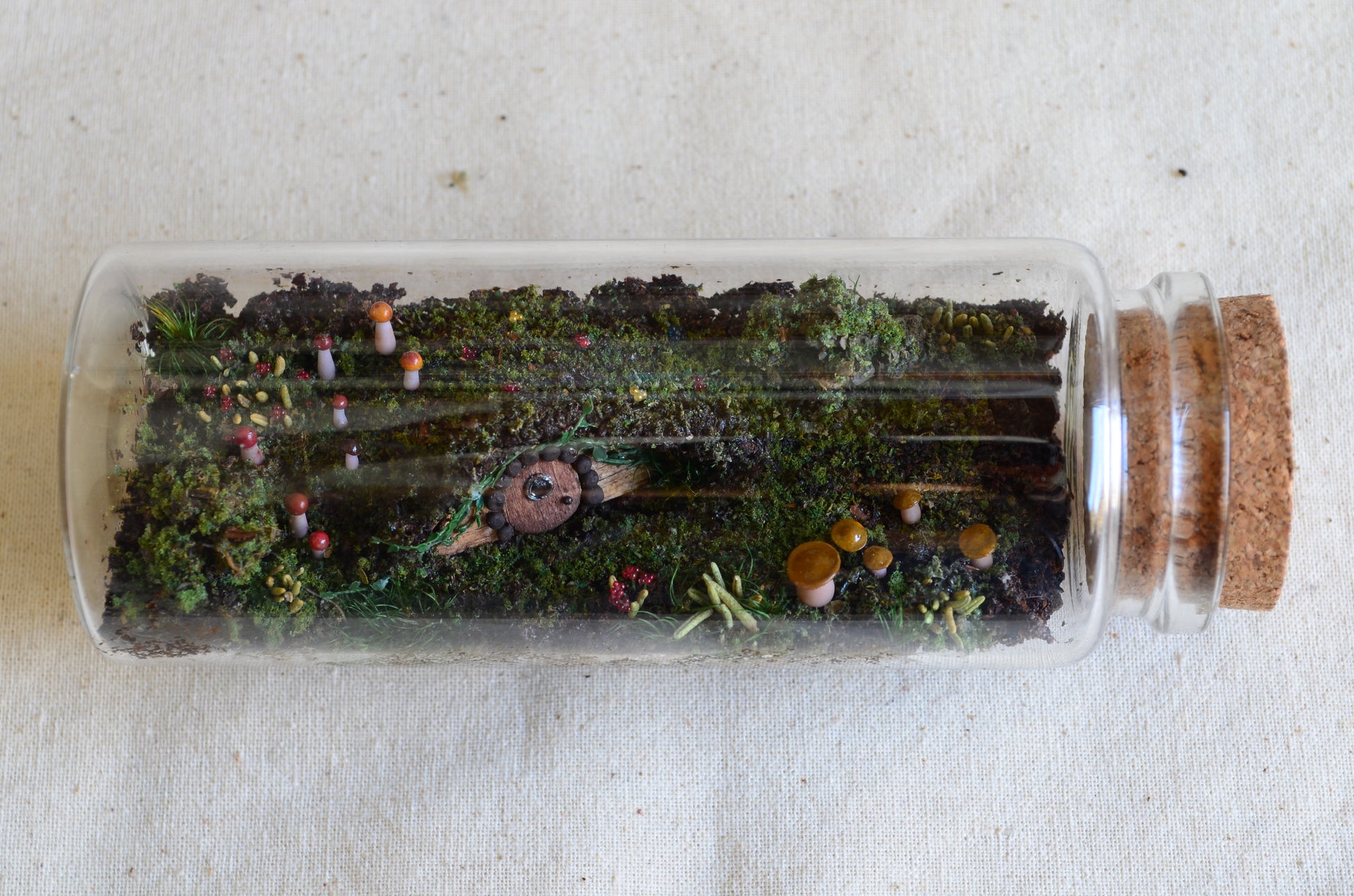 This is a one-of-a-kind, non-reproducible piece, entirely handmade, created as an object for contemplation and collection — a small fantasy world captured inside a bottle.